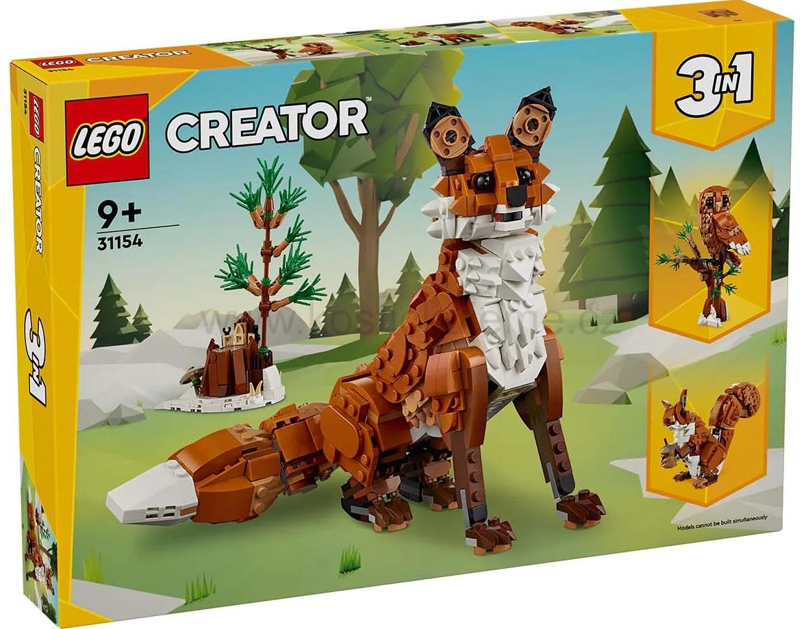 Creator 3v1, Zvířátka, pro kohokoliv, počet dílků 667, věk dítěte 9 letSe stavebnicí LEGO Creator 3v1 (31154) Zvířátka z lesa: Liška obecná se děti od 9 let mohou těšit na kouzelná dobrodružství se 3 různými modely. Součástí je polohovatelná figurka lišky, která hýbe hlavou, krkem, nohama, tlapkami a ocasem a může stát nebo sedět.