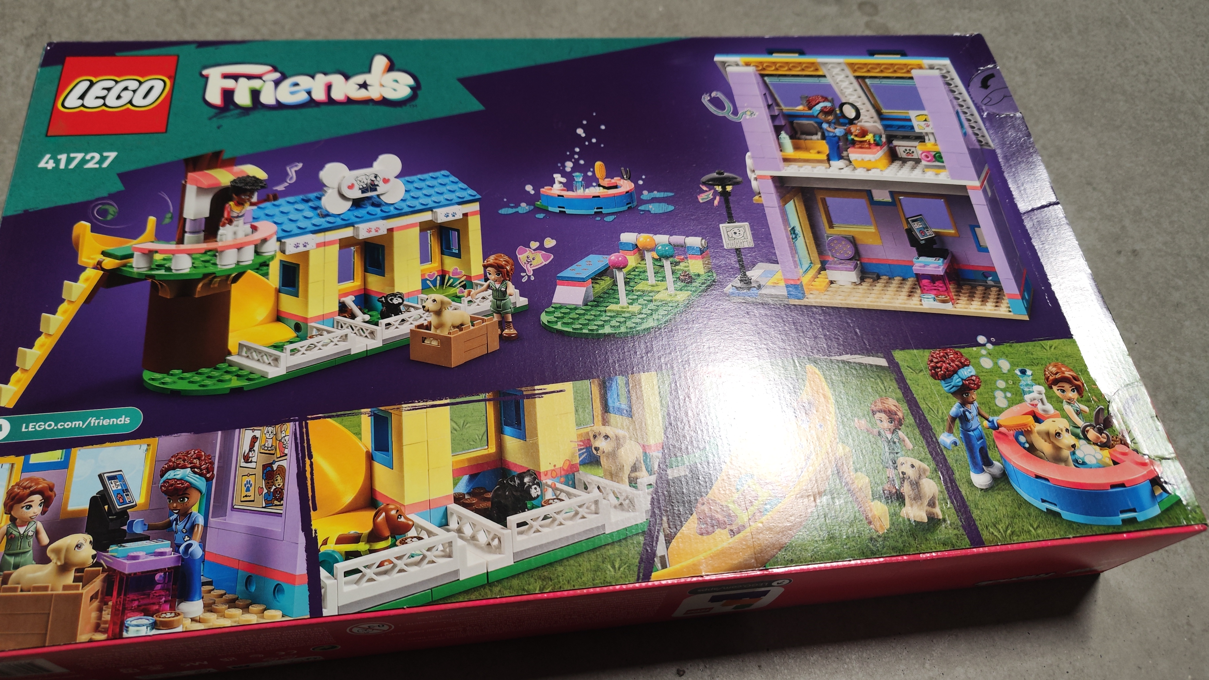 Stavebnice LEGO® Friends Psí útulek (41727) pro děti od 7 let • Součástí jsou 3 minipanenky, 3 figurky psů a doplňky • Děti mohou různé části modelu přeskládat, aby si vytvořily psí útulek podle sebe • Doplňky zahrnují hračky, váhu, léky, krmení, vodu, postel, hřeben a spoustu dalšího • Dárek pro děti od 7 let, které milují mazlíčky a zajímá je adopce zvířat • Měří přes 18 cm na výšku, 26 cm na šířku a 20 cm do hloubky • Objevte intuitivní návod na stavění v aplikaci LEGO® Builder • Seznamte se s novou generací dětí z městečka Heartlake, která přichází na scénu v lednu 2023 • Stavebnice LEGO® splňují nejvyšší oborové standardy kvality • Stavebnice LEGO® Friends jsou testovány na maximum, aby nabízely bezpečný herní zážitek